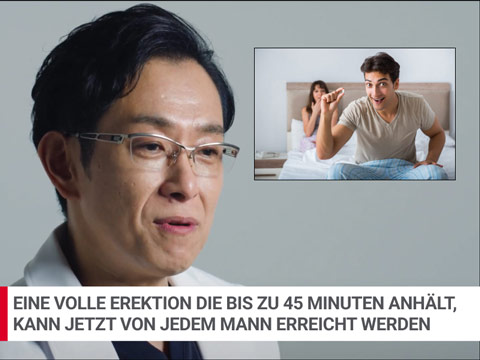 Professor Masaru Kimura (molekularbiologischer Experte) hat beschlossen, die Fortschritte in der Medizin zu nutzen und Männer ein für alle Mal von der Schande und den Komplexen zu befreien, die damit verbunden sind, dass der Penis nicht einsatzbereit ist. Das war der Beginn einer Revolution auf dem Gebiet der Sexologie. Nach 11-monatigen Labortests entwickelte der Professor eine natürliche, sichere und einfach zu verwendende Formel, die es ermöglichte, als Reaktion auf einen sexuellen Stimulus eine sofortige Erektion zu erreichen - wie im Fall eines gesunden, aufgeregten 20-Jährigen.