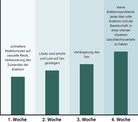 1. Woche - Ergänzung des Metabolitenmangels und Reinigung der Blutgefäße des Penis von Toxinen - Verbesserung des Erektionszustands